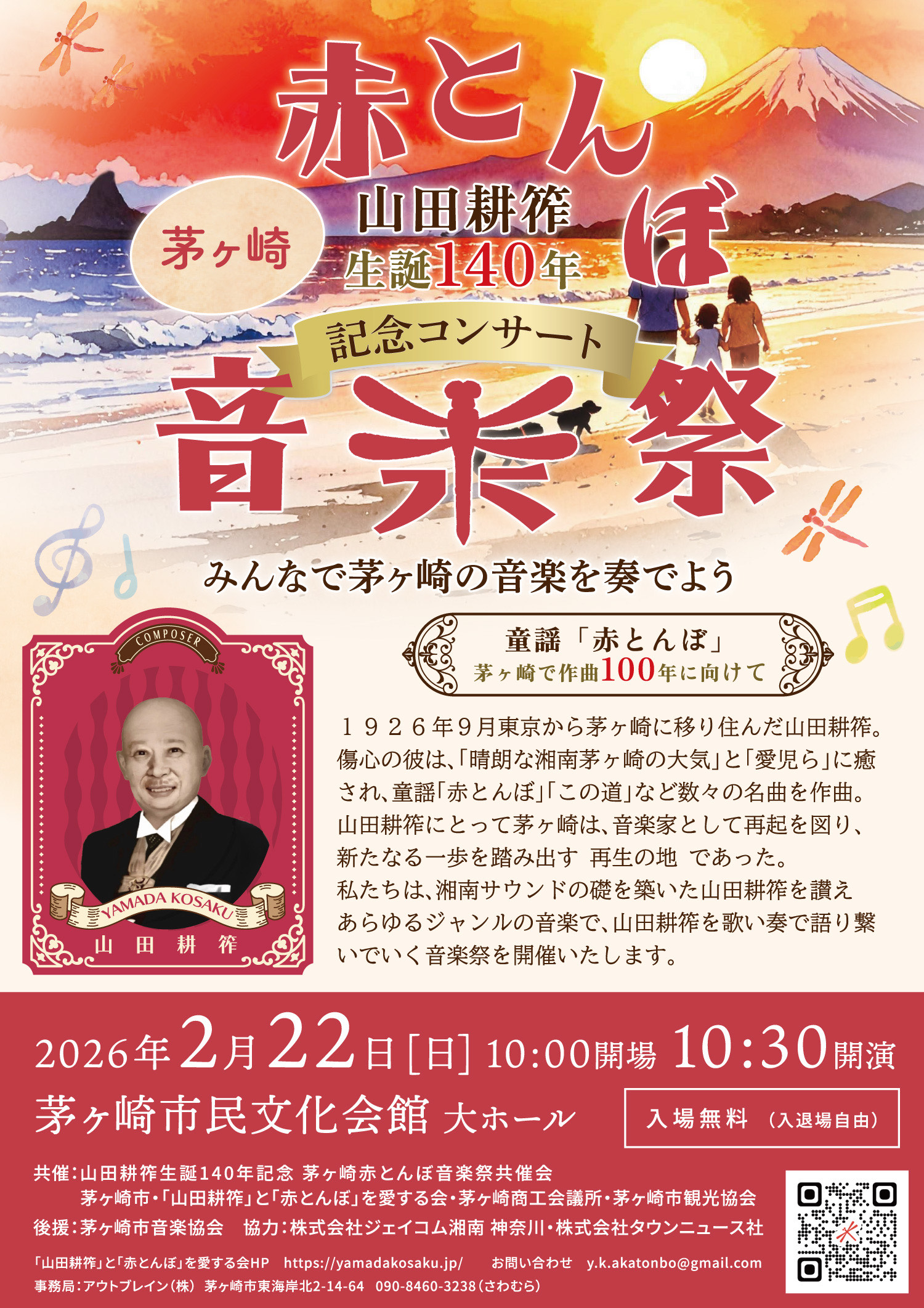 誰もが知る童謡『赤とんぼ』は作曲家・山田耕筰が茅ヶ崎市在住中に作曲した作品です。