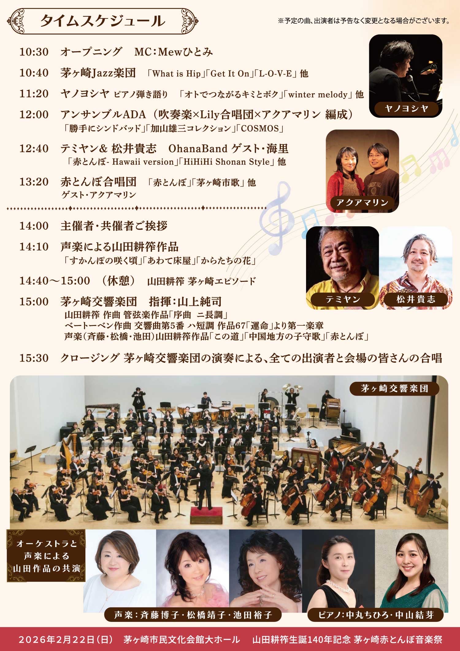 山田耕筰生誕140年、『赤とんぼ』作曲100年を記念して行われるコンサートにゲスト出演します。